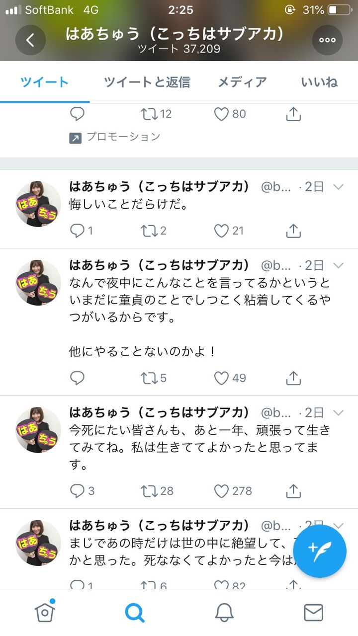 この人はTwitterとかやめたほうがいいんじゃないかと思うわ。もみあげる名無し at 2019年01月12日 14:42 ID:CgdNpD2e0
