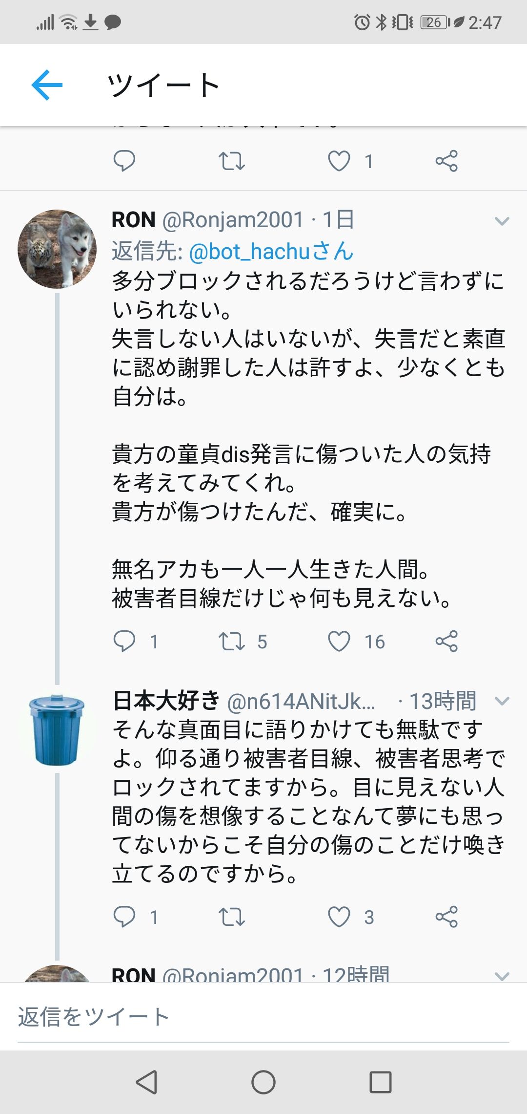 自分は他人を散々馬鹿にしといて言い返すのは許さんとか頭おかしいんかこいつ・・・