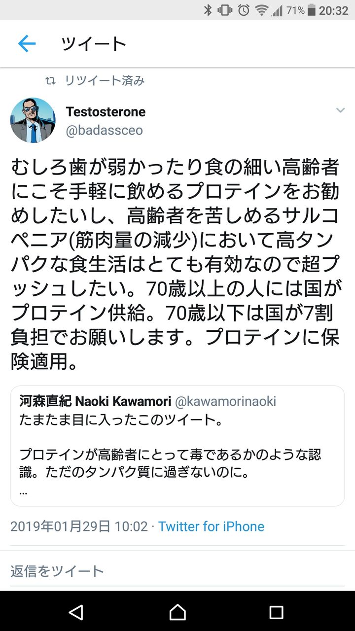 プロテインとか肉とか目の仇にしてる奴居るけど何処で刷り込まれたんだかもみあげる名無し at 2019年01月30日 12:06 ID:JSyThJTY0 -