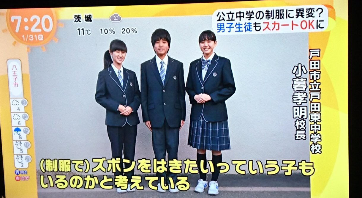 【朗報】男子中学生、制服でスカートを履けるようになる