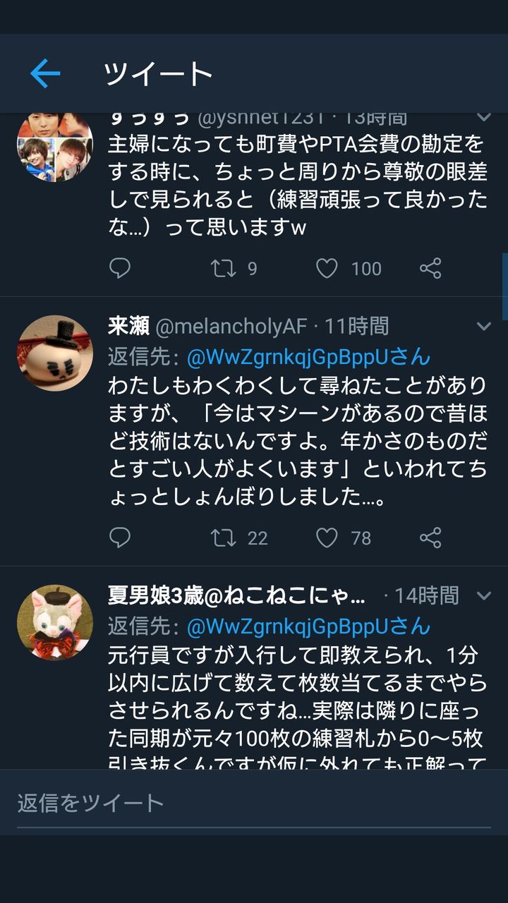 私もたまに求められるとやるよー!ただ、窓口経験2日、オペレーション経験なし、扱う額は基本1000万以上(機械計算)のため超ド下手です!こないだ職場でやって最後の札をバチーンとならしたら札を落として、皆様を混乱と恐怖におとしいれまし… https://t.co/i28kMxt5OS