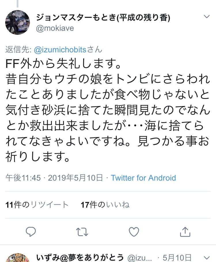 見つかるといいなも at 2019年05月17日 08:06 ID:csyYNf930 -
