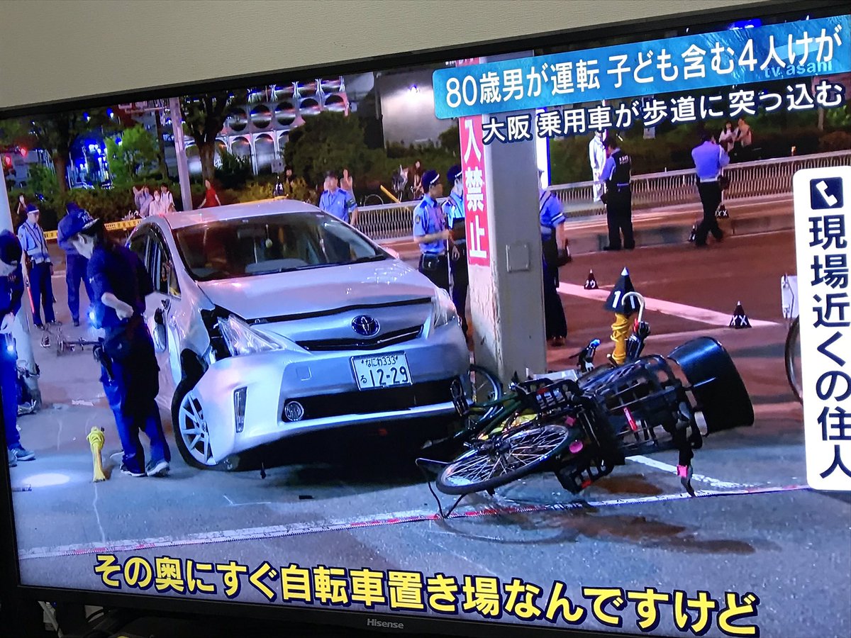 発表では、乗用車は駐車場から駐輪場に突っ込み、駐輪場の自転車をなぎ倒して、4人をはねたという。