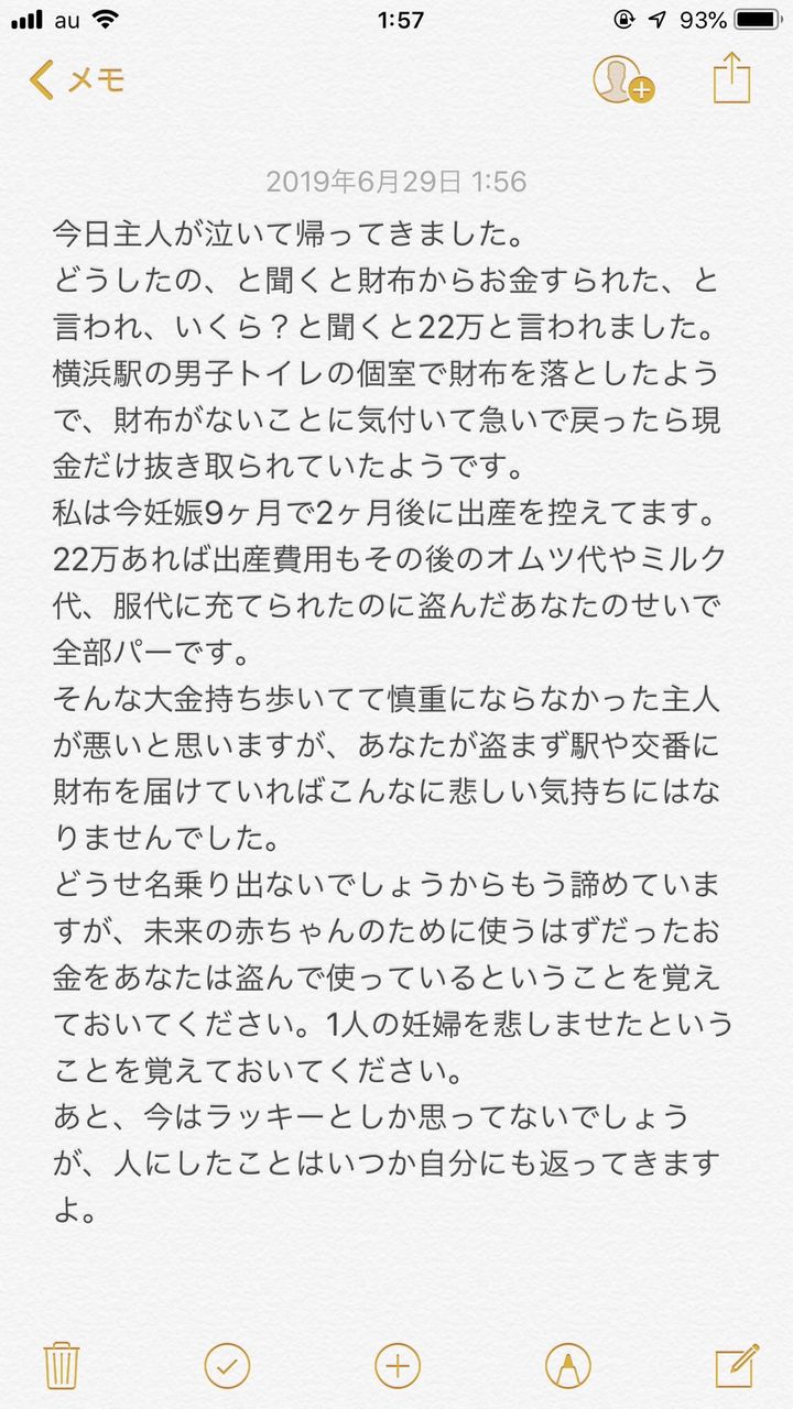 Twitter女さん「夫がトイレに財布を忘れて22万円盗まれた。出産費用が全てパー。私は犯人を絶対に許さない」