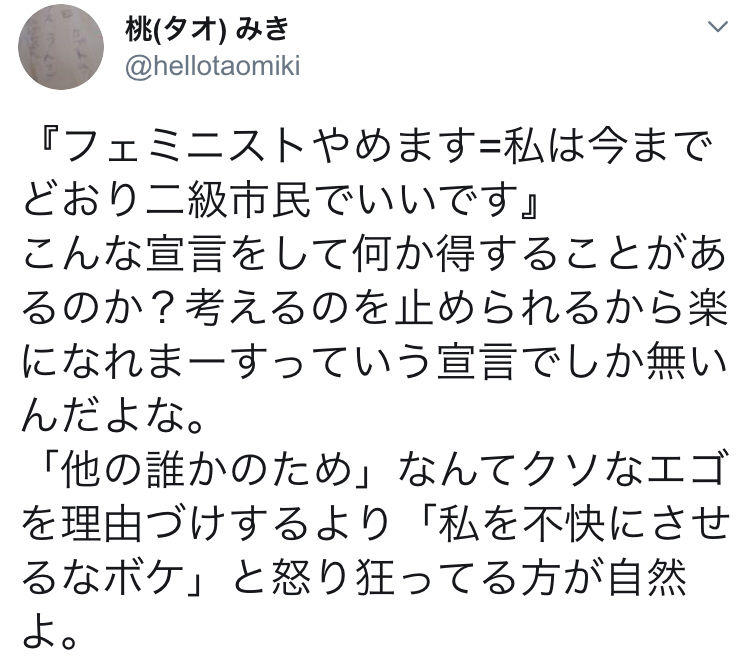 少しでもこの人に共感し、今少し生きづらくなってるかもしれないと考えたそこのフェミ
