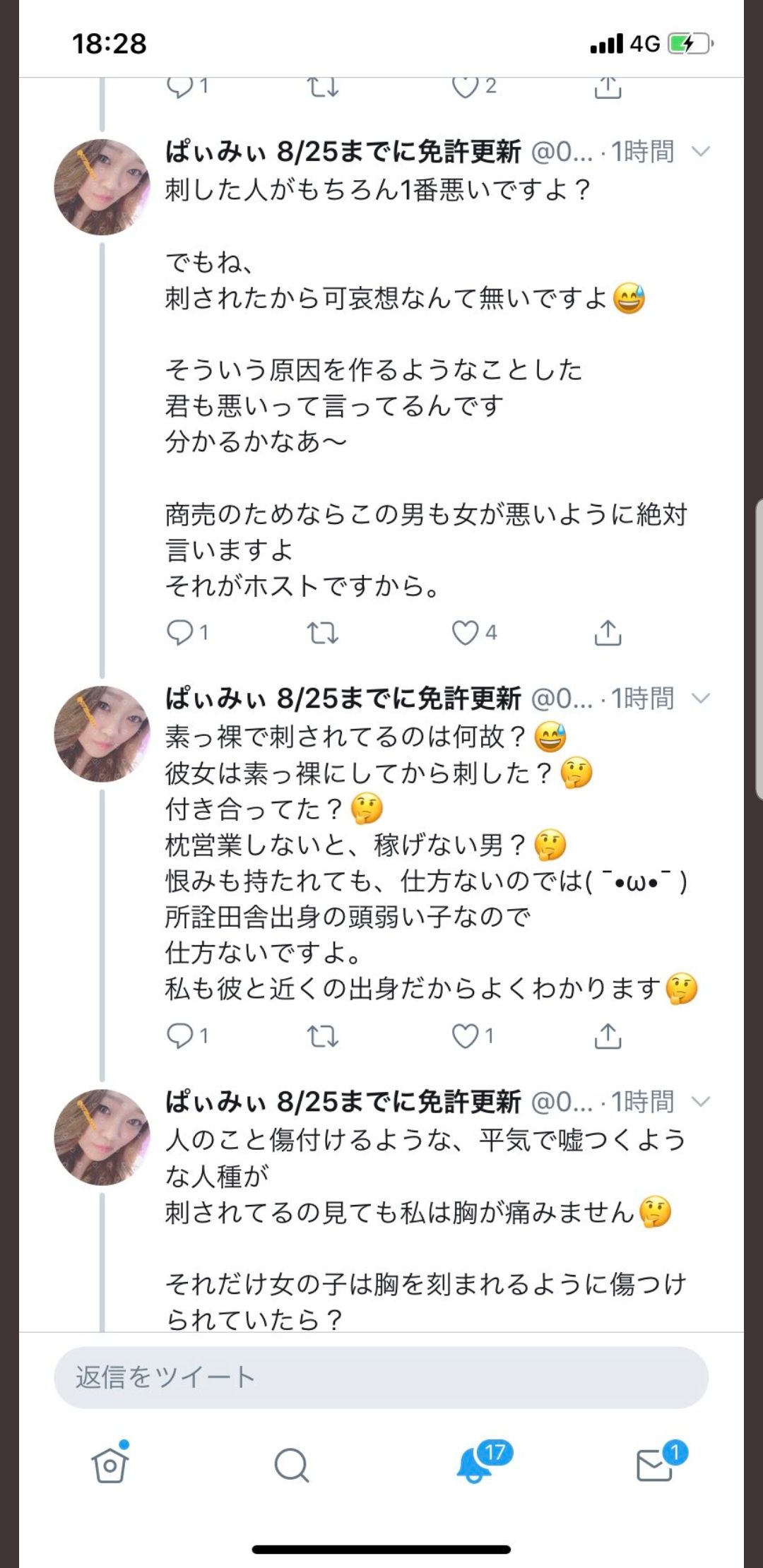 人に恨まれて刺される時点で三流ホストだろat 2019年07月04日 16:18 ID:96vydnRL0