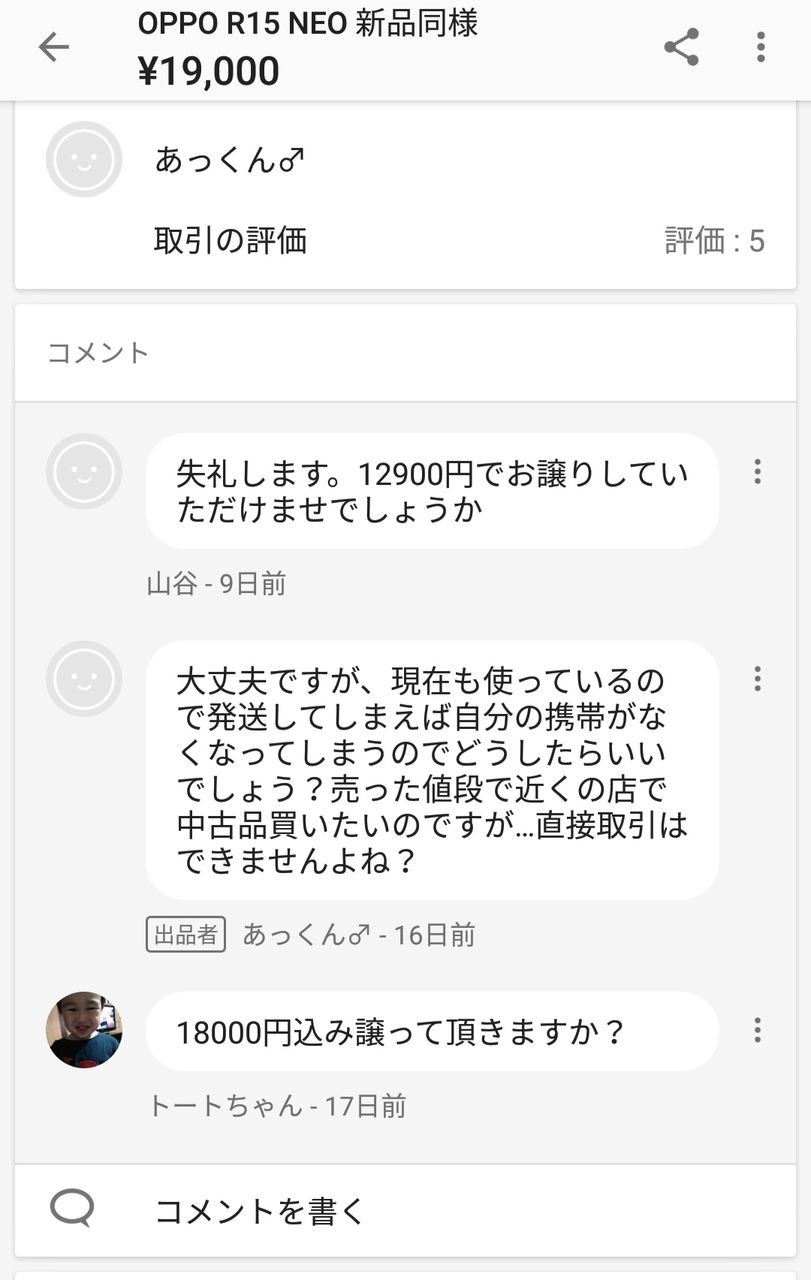 19000円を12900円で売ってくれってなかなかな図太い神経してるな