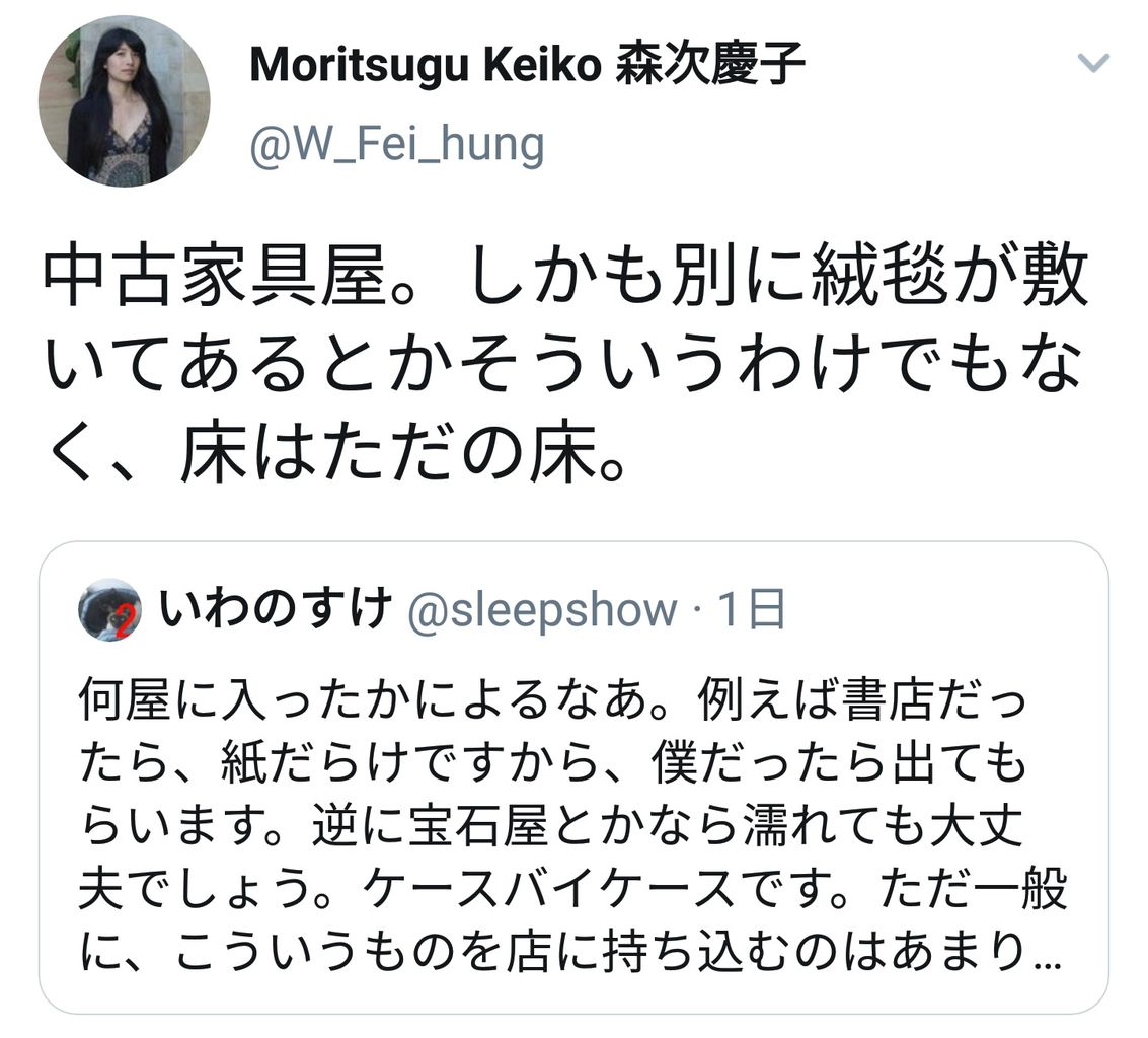 ゴミクズ思考のババアだな。家具店に飲食物をそのまま持ち込んだら注意されるに決まっとるやろ。常識も欠けてるどうしょうもないババア。名無し at 2019年07月25日 12:00 ID:b1mrxuvg0
