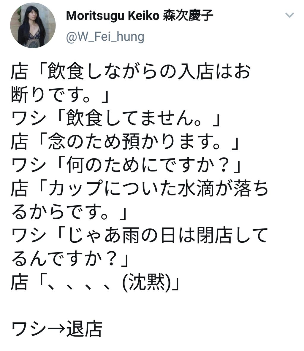 店内飲食禁止の理由を「わざわざ」聞いてくるような馬鹿には