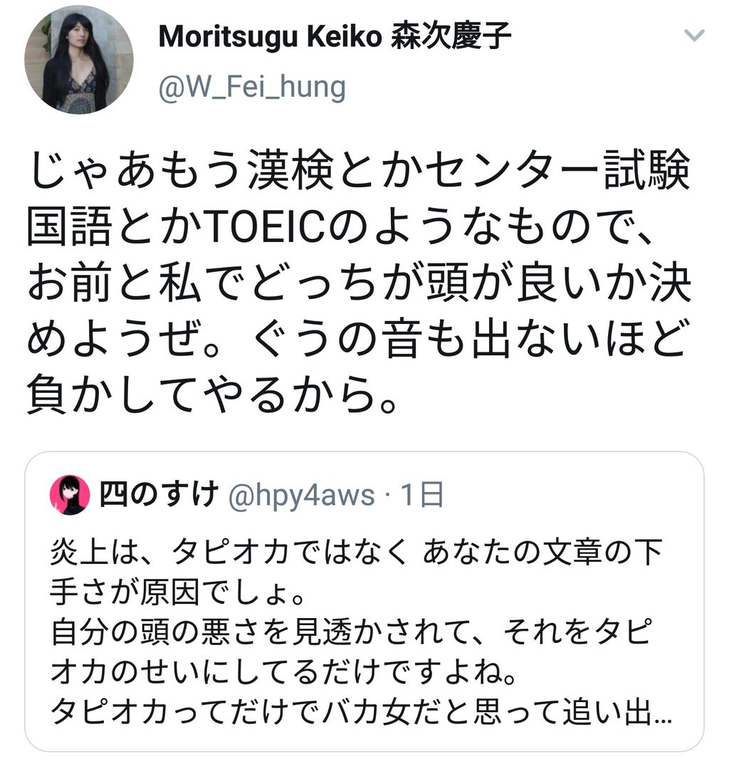 現にこうやってsnsで噛みついてるんだしもみあげる名無し at 2019年07月25日 21:43 ID:7tlqigC.0 -