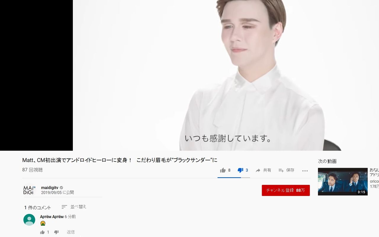 【朗報】Mattさん、とんでもない姿でCMに初出演してしまう
