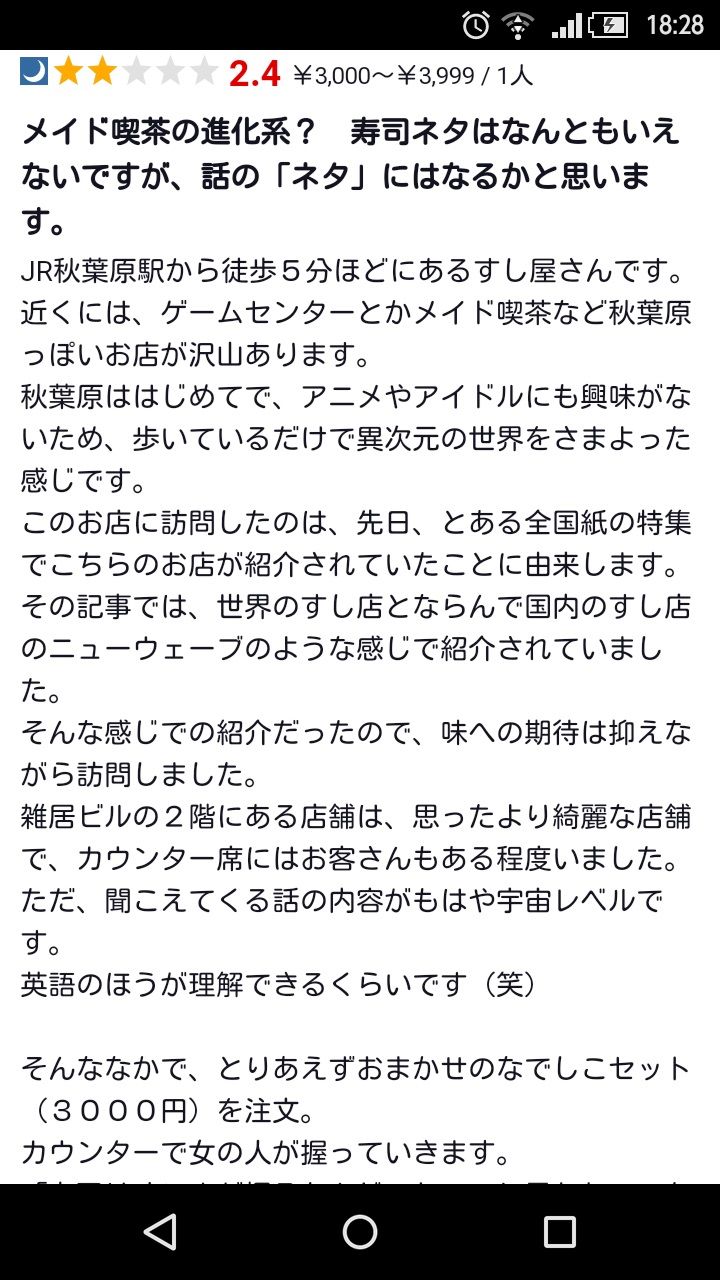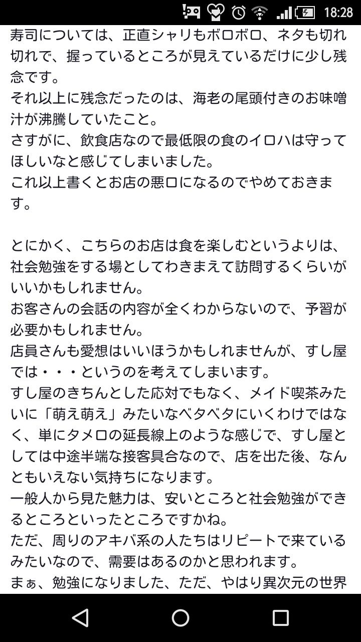 チェキ撮影とかあるらしいし実態はメイド寿司屋レベルの店らしい