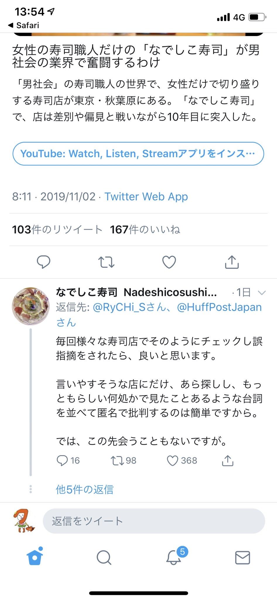 ほんとに女性が寿司握った方が良いね、ノーパンしゃぶしゃぶみたいなもんだしねおマンさんvs海原雄山 at 2019年11月04日 11:56 ID:UuVdLsXx0 -