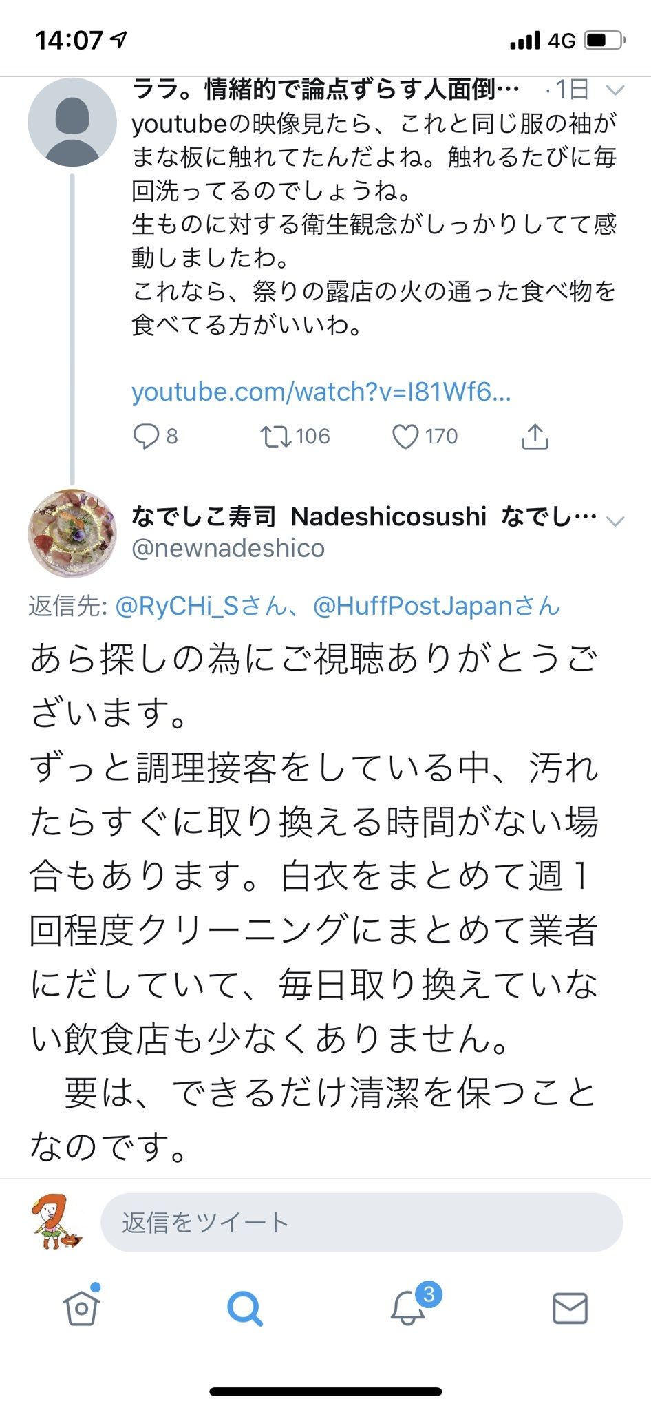 女性が板前する事自体は一切異論ないんだが、単純に不衛生は良くないもみあげる名無し at 2019年11月04日 21:10 ID:40Qt0aWe0