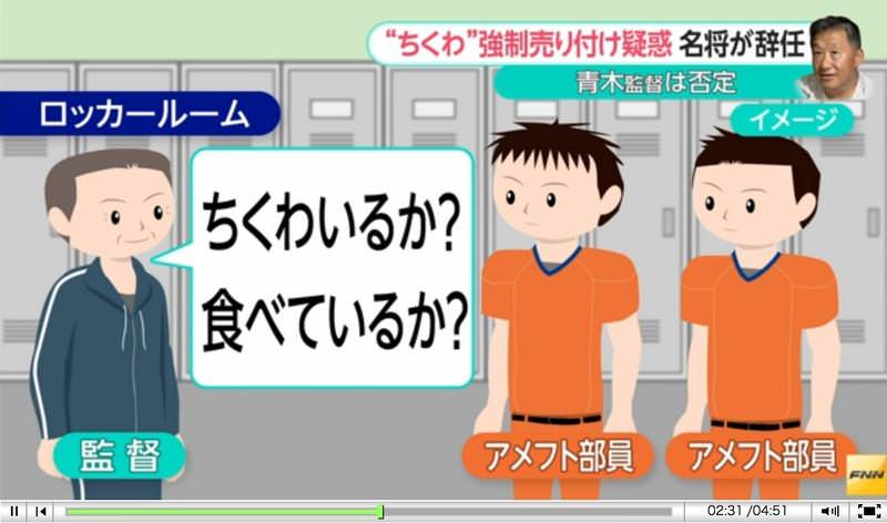 どっかの大学アメフトの監督が部員にちくわ買わせるのを強制して問題になってたよな