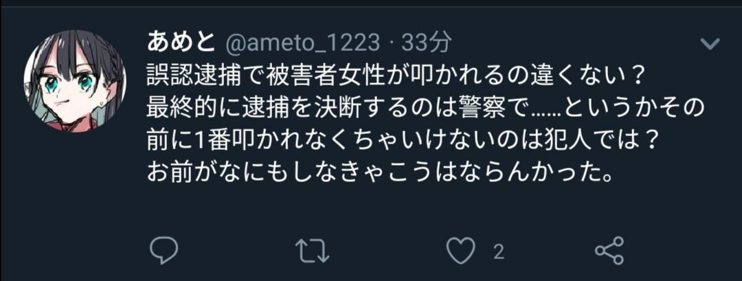 女叩きというかこの女は無実の人に迷惑をかけたんやで