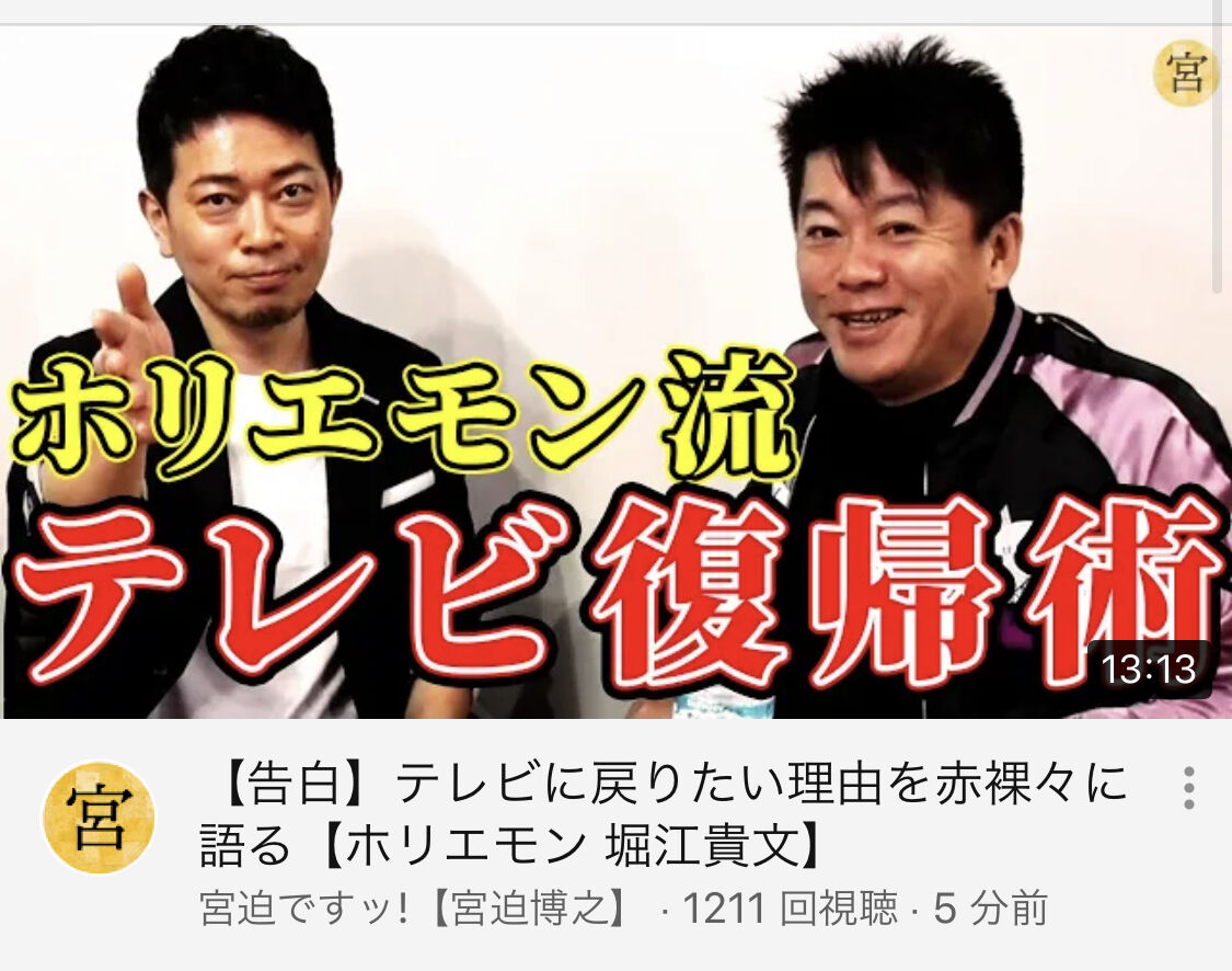 少なくともテレビやってたところから前科持ちになってYouTubeやってるホリエモンの前で言うことではないな