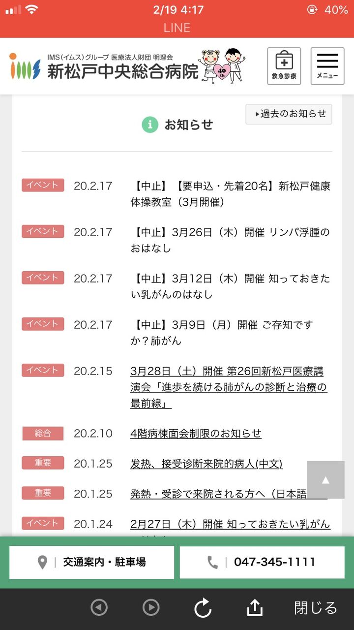 近所の総合病院、感染患者出て外来休診になったわもみあげる名無し at 2020年02月19日 20:06 ID:6U1.rZLQ0