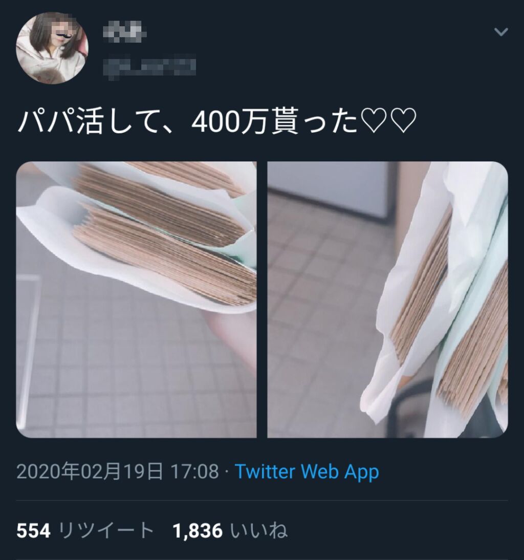 【一攫千金】Twitter女さん、パパ活で400万をGET!!