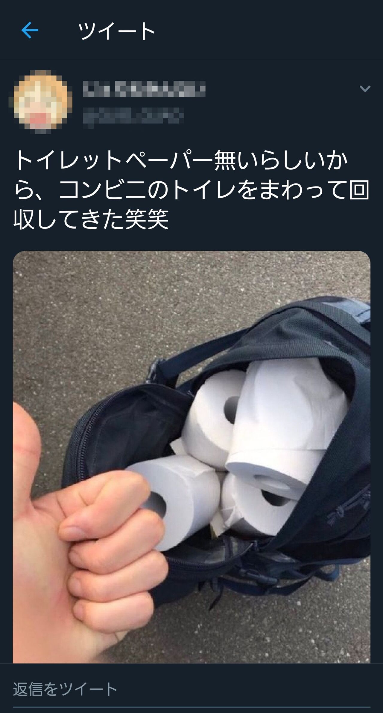 コロナ流行る前からトイレットペーパーパクるやつは普通にいるぞat 2020年03月01日 18:41 ID:Yq7Y4z8p0