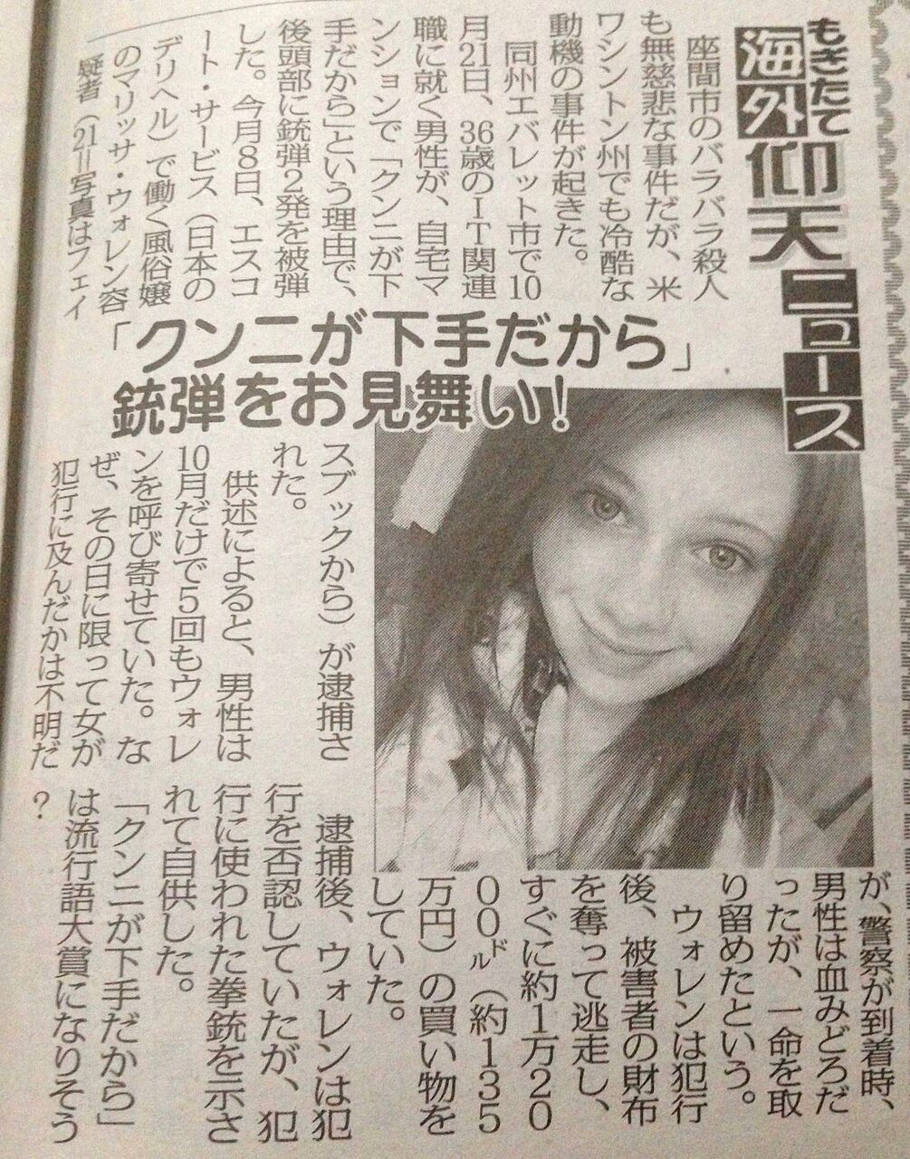 デリヘル嬢「オッサンさぁ…ク〇ニ下手すぎない?殺すよ?」後頭部に銃弾を2発撃ち込み逮捕