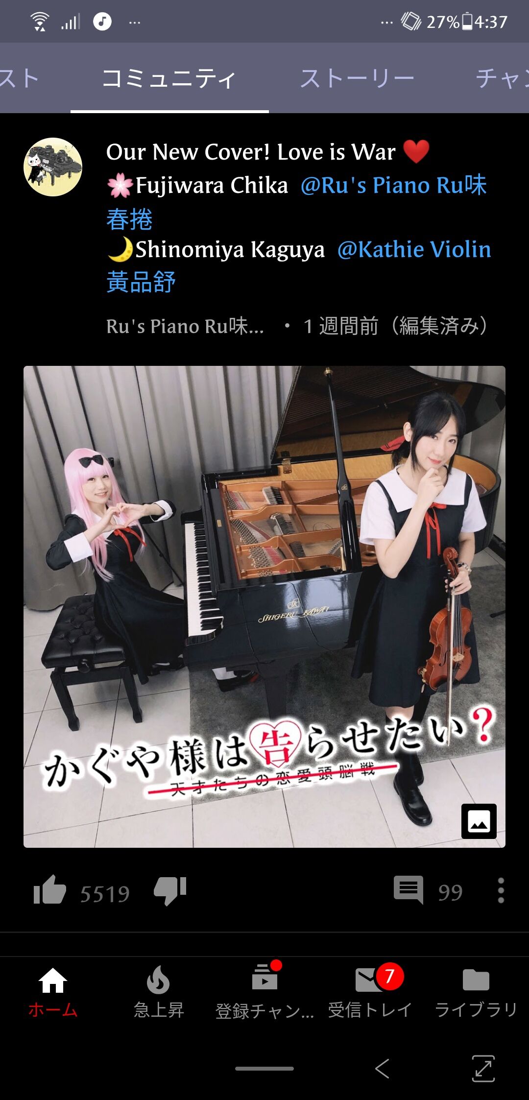 まあプロの演奏が簡単に聞ける時代だから、素人にしては上手いっていうことに何の価値もないからね。こうでもしないと誰も見ないだろうししゃーない。at 2020年05月12日 21:45 ID:Is2FxQlL0