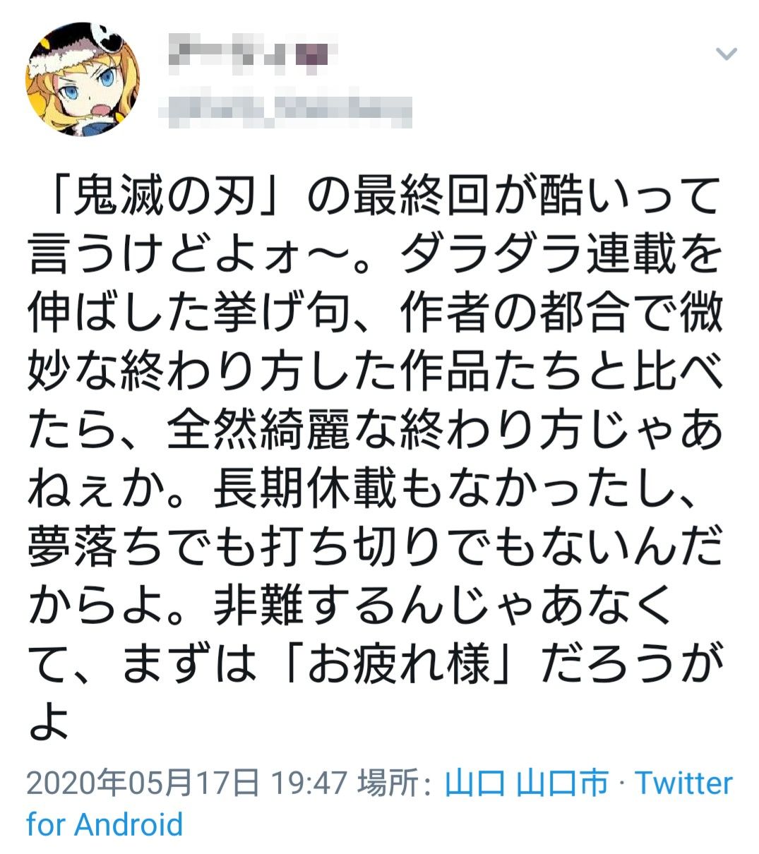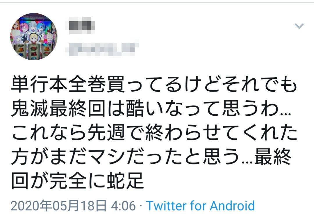 【悲報】鬼滅の刃さん、Twitterで最終回をボロクソに叩かれる