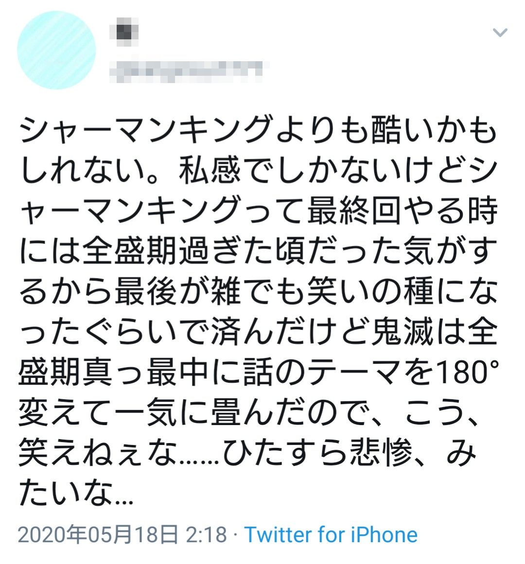 無惨戦から急激につまらなくなってったし当然っちゃ当然もみあげる名無し at 2020年05月18日 13:29 ID:3tLeniNA0