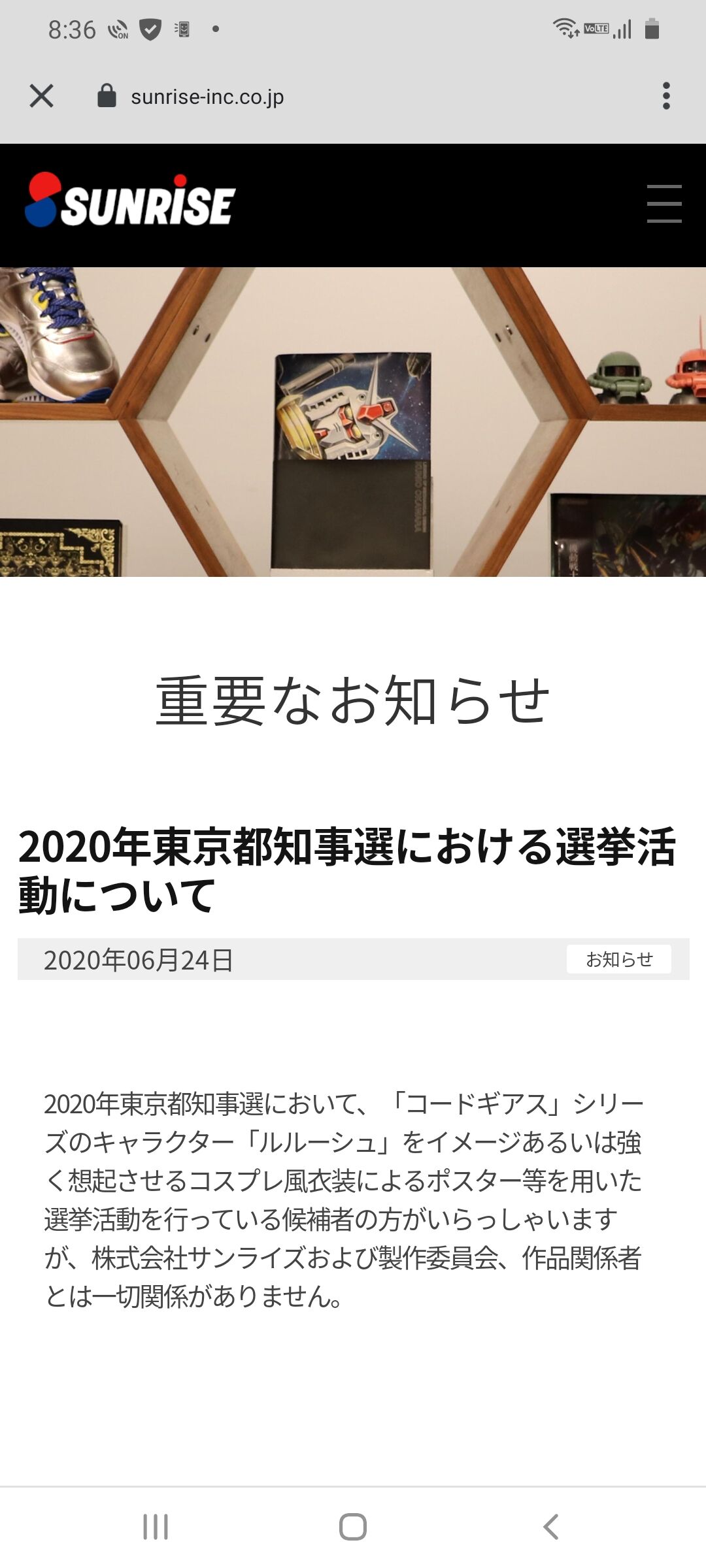 ルルーシュのコスプレにサンライズがキレてて草