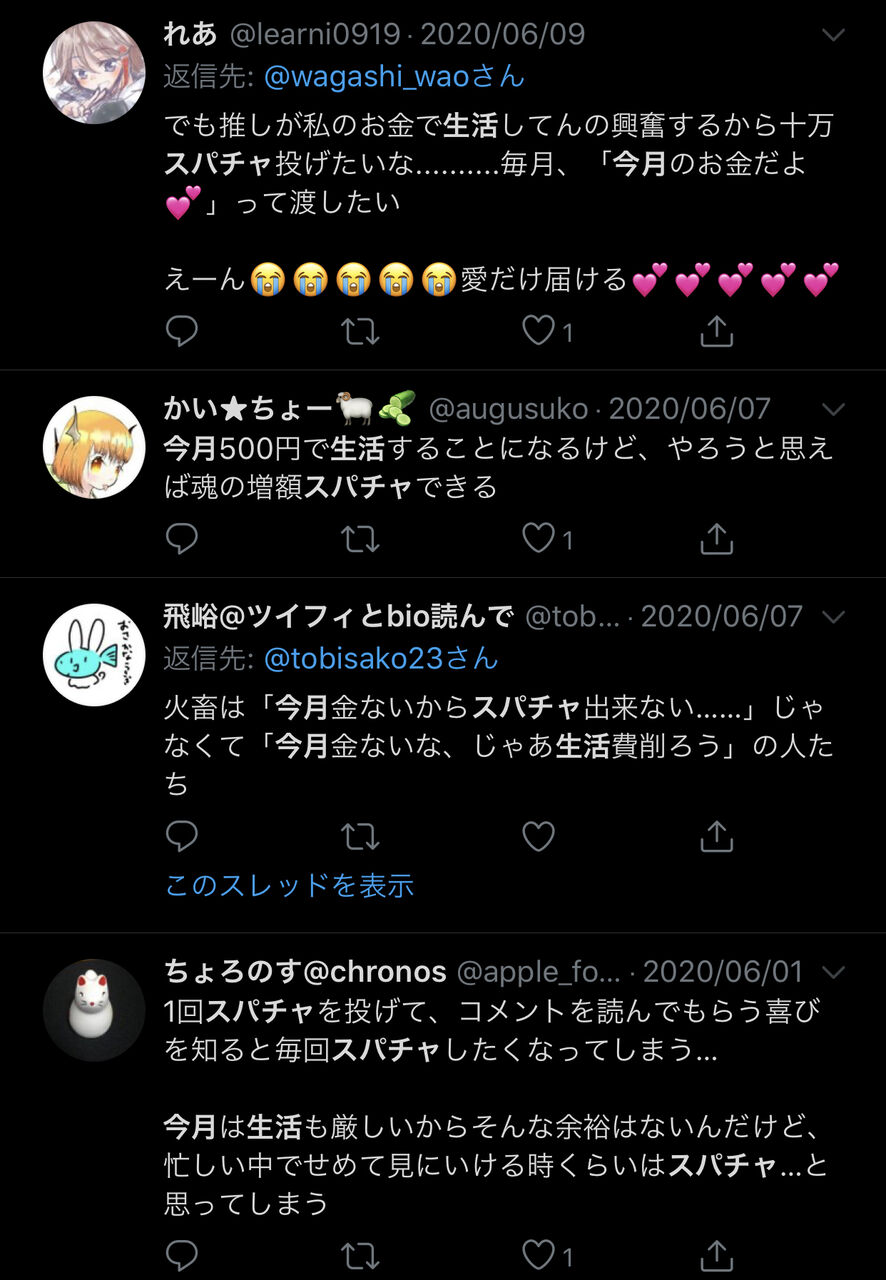 いまだにスパチャについてよくわからんがソシャゲみたいになんか手に入るんだろうかat 2020年07月04日 19:23 ID:K6jPQfLV0
