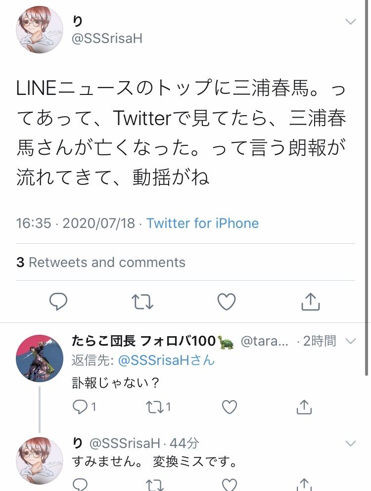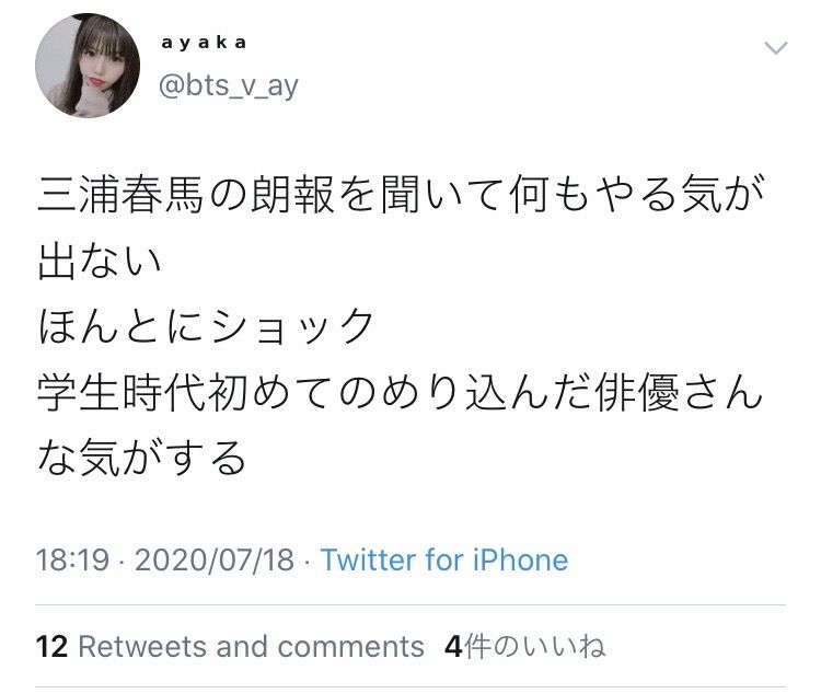 【悲報】Twitter女さん「三浦春馬の朗報を聞いて放心状態です。苦しい。」