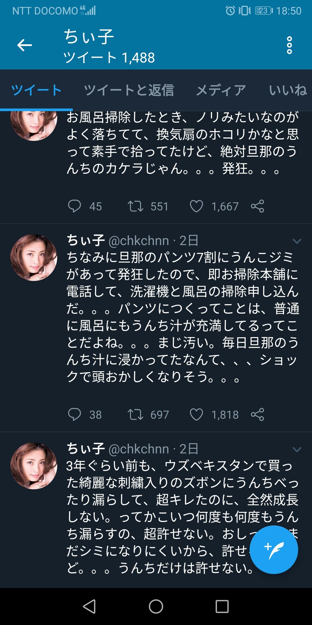 【悲報】Twitter女さん、旦那のうんこで精神がぶっ壊れる