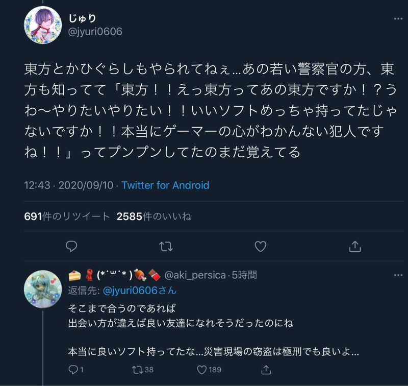 ましてや、女性相手に「被害品返ってきたら貸して」なんて言おうものなら、公私混同セクハラ案件でクビななし at 2020年09月11日 13:43 ID:ISt04tyL0 -