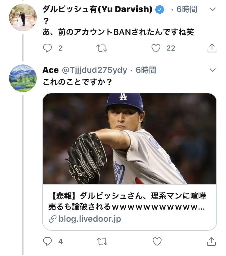 【悲報】レスバトルで劣勢になったダルビッシュ、ついに禁じ手を使う