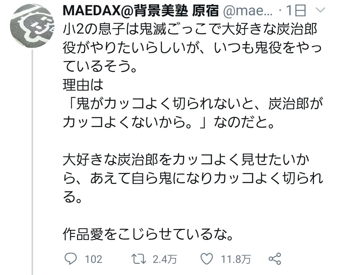 子供が鬼滅楽しんでるのは本当だろうけどちょっとだけ盛っちゃうんだろうね