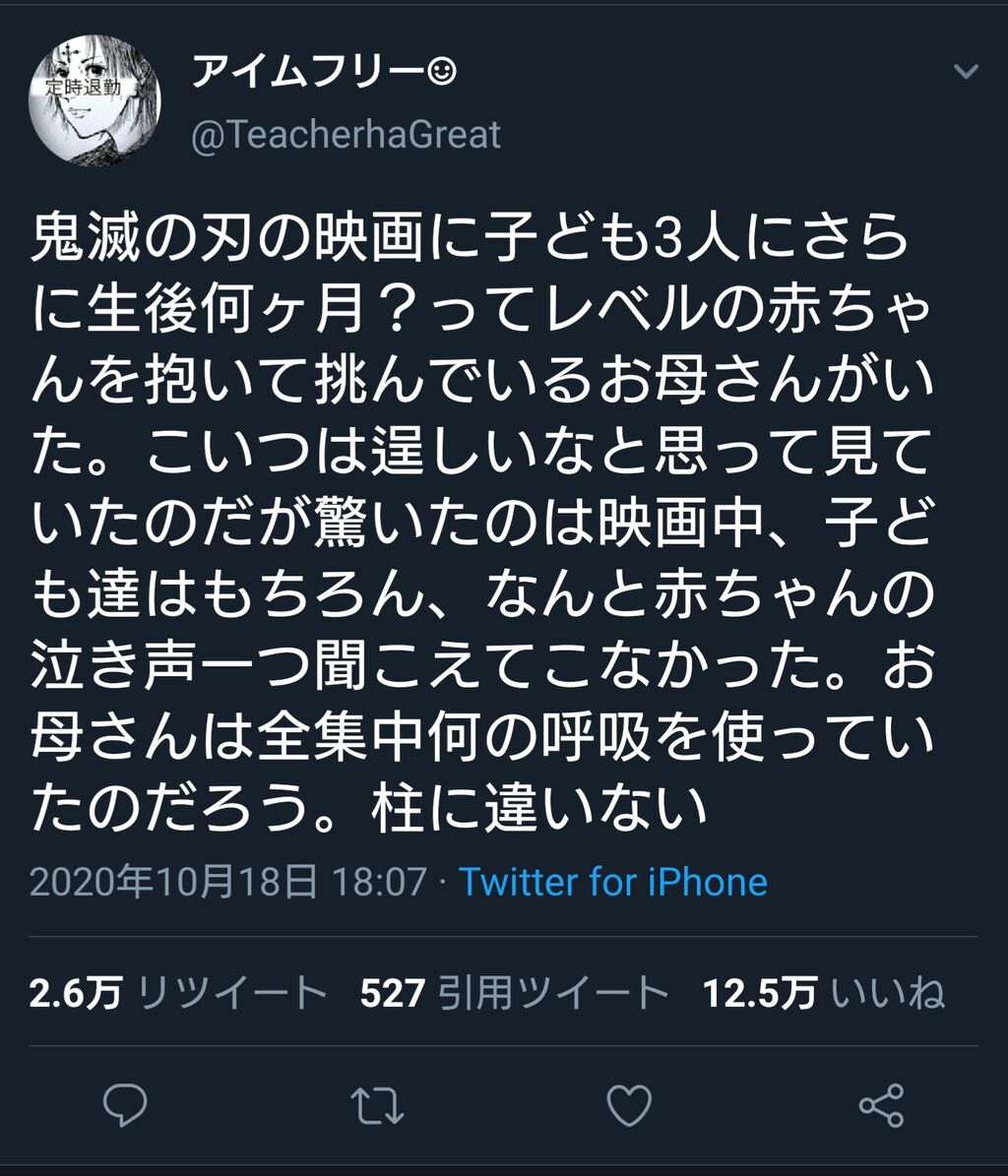 4枚目の赤子連れた鬼滅ババアのヤツ、そのガキ◯んでんじゃねぇの?常識的に考えて、映画うるさくてガキにも良くないし、周りに迷惑だろ。ははは at 2020年10月20日 21:40 ID:wyRD6c8q0