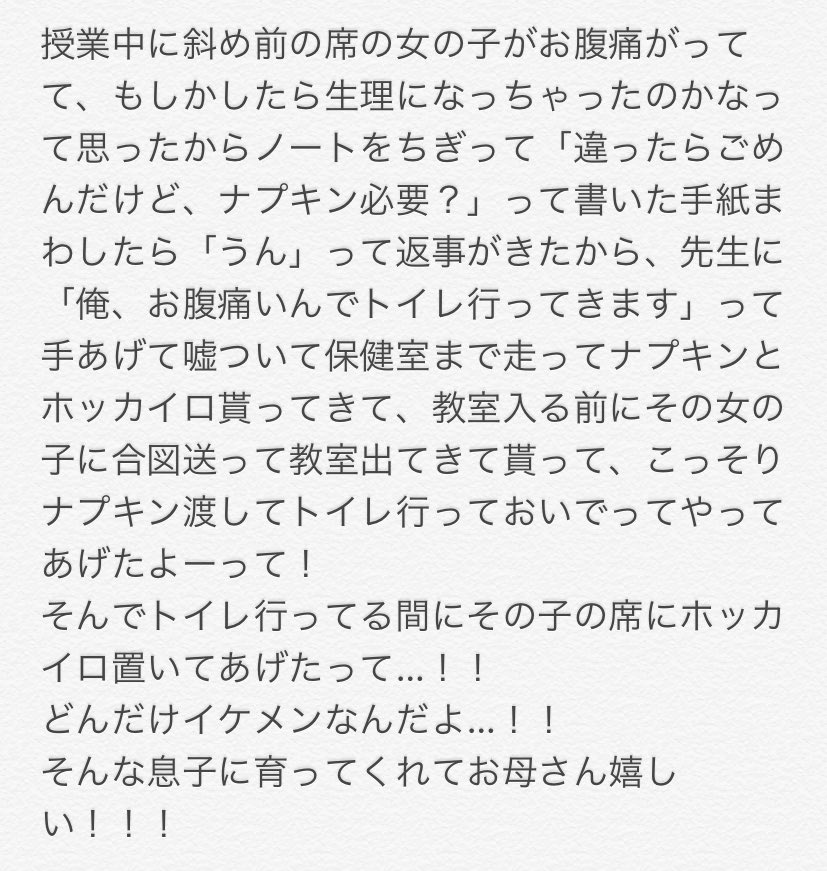 書かれている話の男の子が毎日「生理っすか?生理っすか?」って聞き回っていたら流石にキモすぎるだろうが、たまーの出来事だから受け入れられる話じゃない?