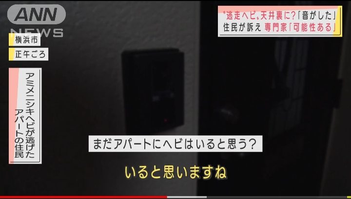 アミメニシキヘビが逃げたアパートの住民:「管理会社に天井裏を捜索してほしいって言っているんですけど、大家さんの許可がないと無理だってことで、連絡待ちをしている」