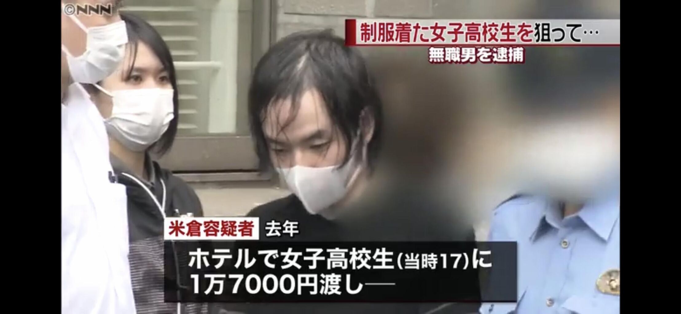 警視庁によりますと、無職の米倉真生容疑者は去年、さいたま市のホテルで当時17歳の女子高校生に現金1万7000円を渡してわいせつな行為をし、その様子をスマートフォンで撮影した疑いが持たれています。