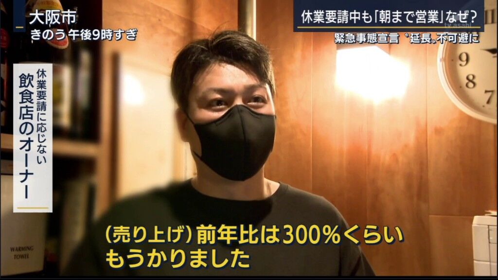 だって正直に自粛してもその給付金すら未払いにされるなら営業した方が得やん?あ at 2021年05月26日 14:58 ID:QoS0tRDy0