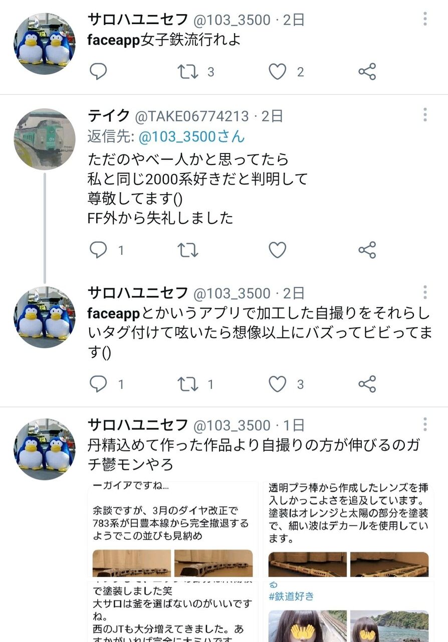 鉄オタの珍房線、faceappに気づいて人チン事故もみあげる名無し at 2021年05月27日 08:11 ID:r9vZYZYt0