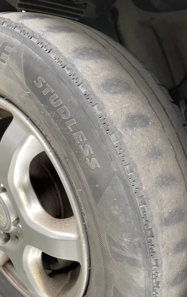 もう夏なのにスタッドレスタイヤはいてるとかやべぇ・・・