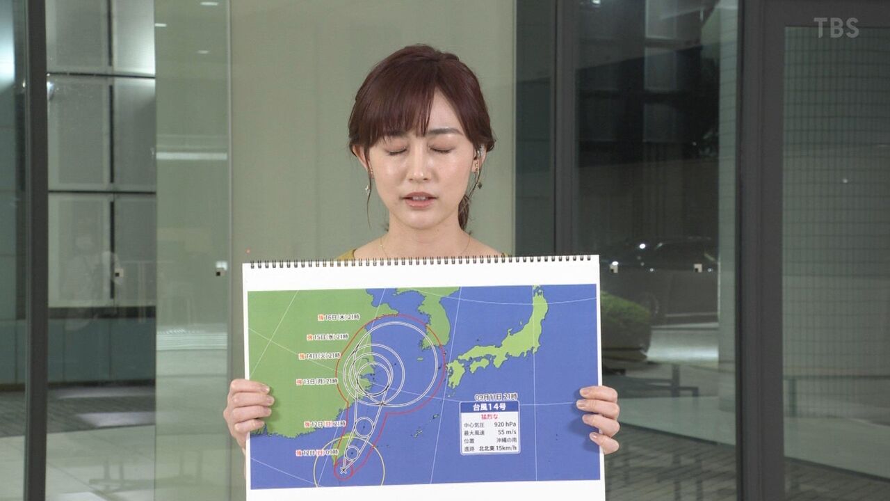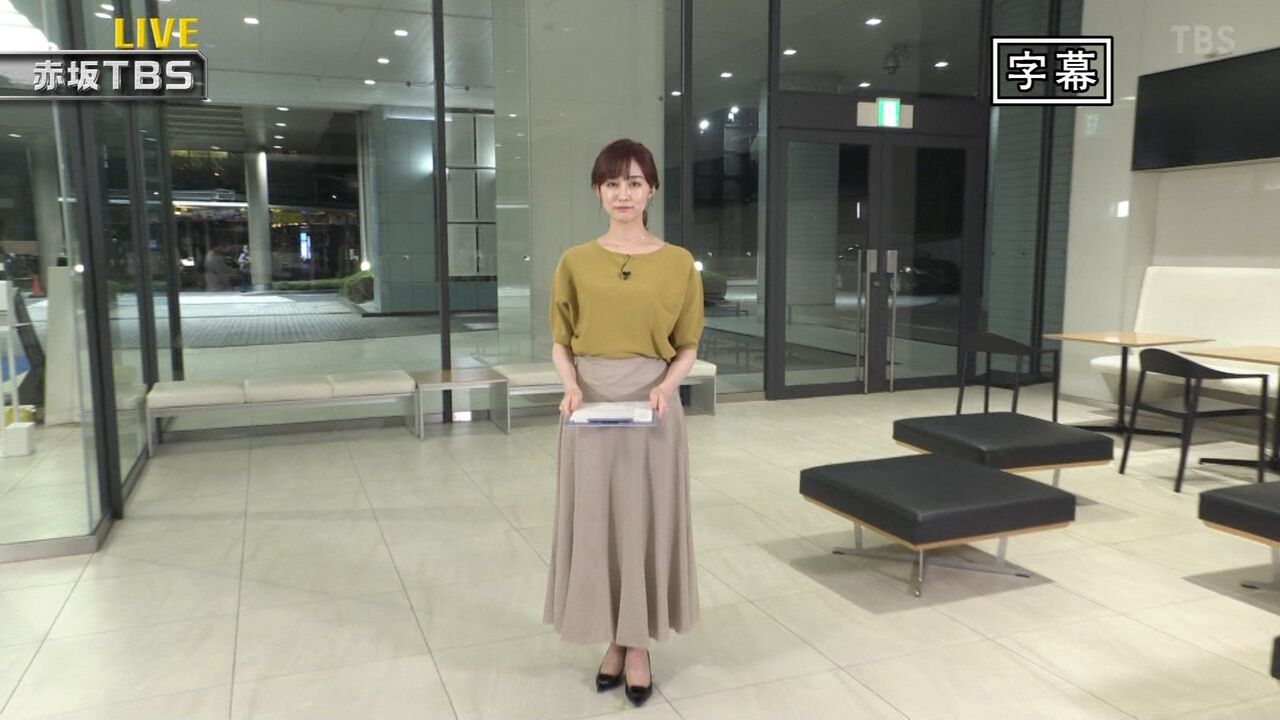 TBSの生放送で新井恵理那アナウンサーが天気予報読み上げ