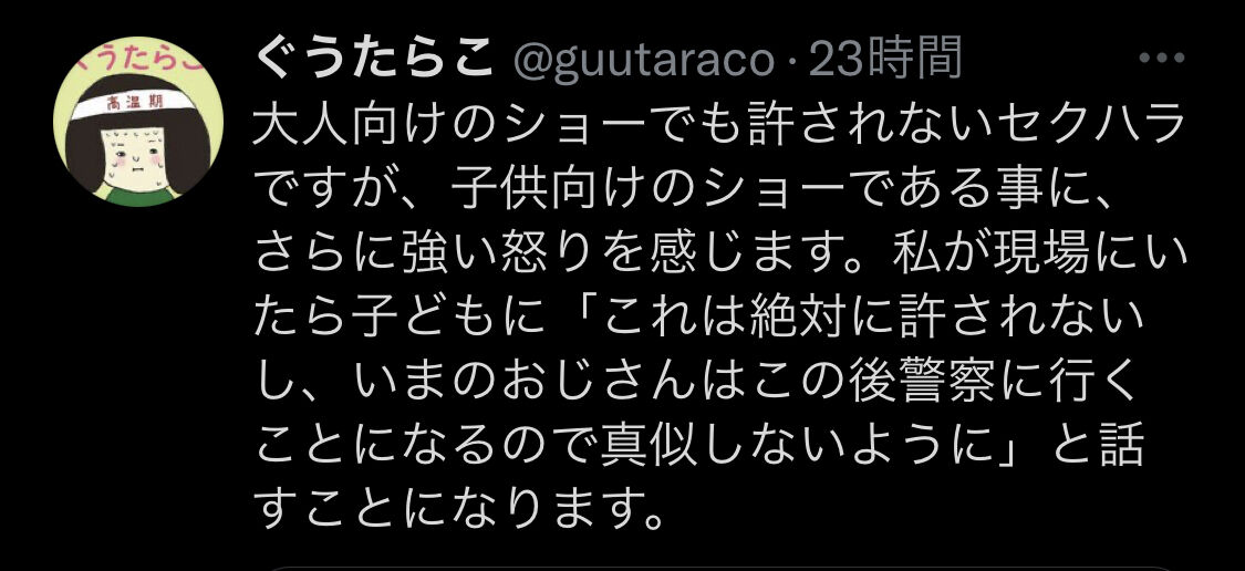 まあヒーローショー業界はセクハラすごいって聞くもんなあ