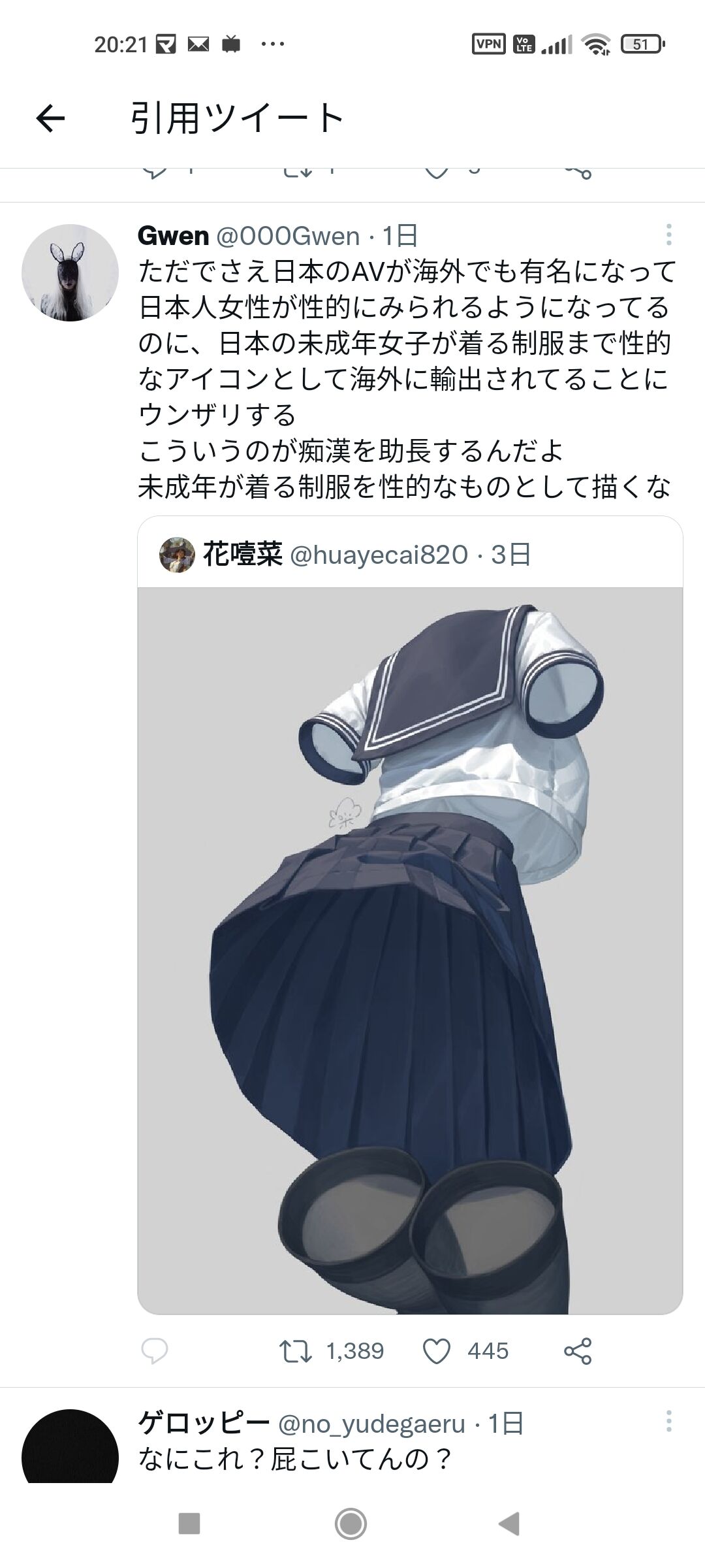 学ラン描いてる絵に発狂してる男がいたらただのキチガイとして扱われるよな