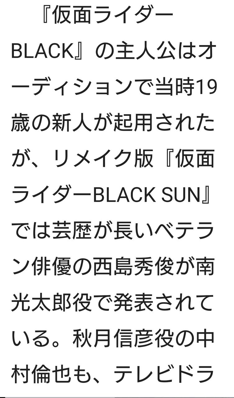 いっそ新Blacksunをあんまアレンジせず、西島秀俊に着させて倉田てつをから切り離すべき。名無し at 2021年12月08日 00:12 ID:HJxWR0BJ0 -