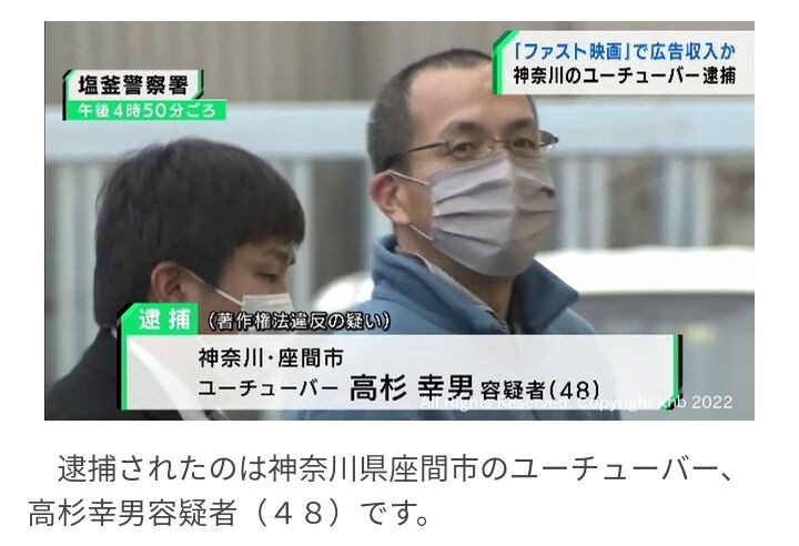 著作権法違反容疑で逮捕された高杉幸男容疑者(48)は逮捕前に時事通信の取材に応じ、「ファスト映画の投稿は人生初の成功体験だった」などと語っていた。別の投稿グループが逮捕された後も、「自分の動画は完全に合法」と主張して活動を続けていたが、昨年9月ごろ突然大半の動画を削除。ツイッター上では違法性を認識したような態度も見せていた。