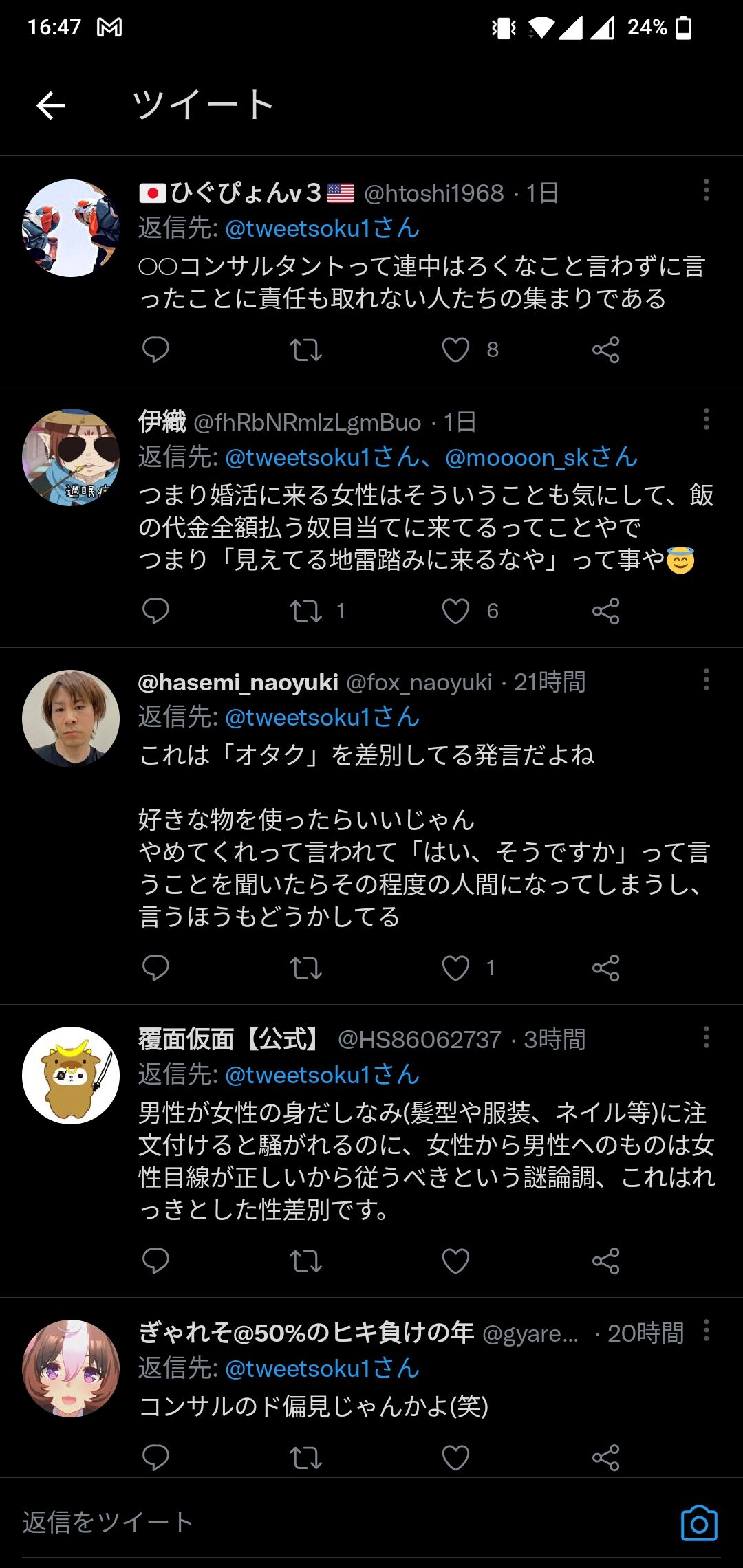 ネットに踊らされて皆さん馬鹿なんじゃねーの?コンサル、マナー講師みたいな適当に思いつきで喋ってるようなくだらない連中の言うことを真に受けてどうすんの?そんなにみんなと一緒がいいの?ホントヤバいね。at 2022年05月06日 19:46 ID:CQuFb5Yb0