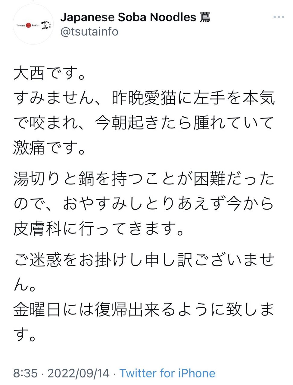 なんか猫に咬まれたのデマ扱いされとるけど本人発信やったんかat 2022年09月24日 19:06 ID:Kb9m7YQE0