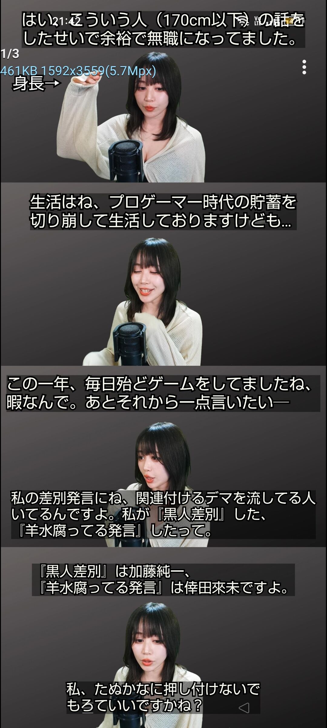 ・勝手に傷ついた170cm以下の人たちには謝罪をする気はない